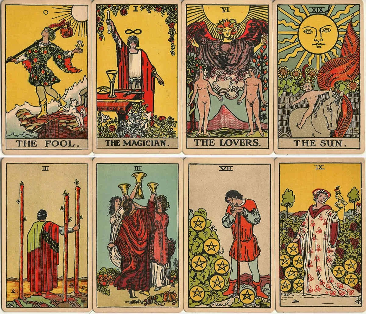Examples of cards from the Rider-Waite-Smith deck illustrated by Pamela Coleman-Smith